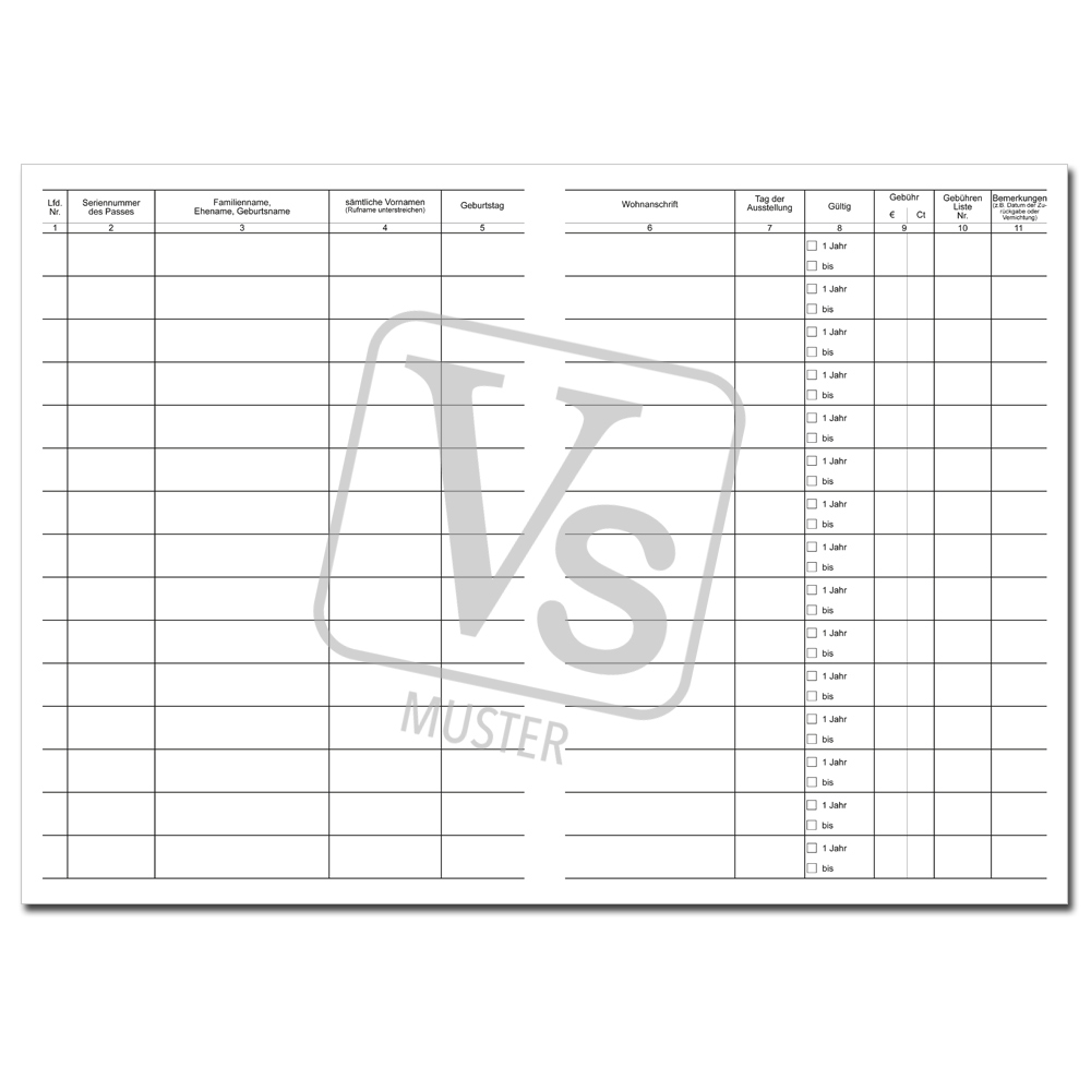 Produktinformationen "Verzeichnis der ausgestellten vorläufigen Reisepässe"